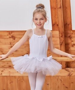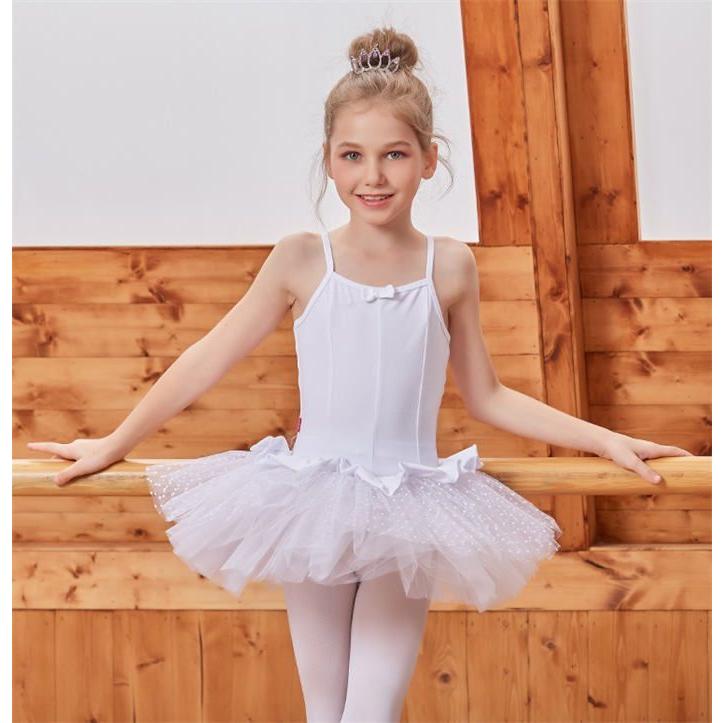 バレエレオタード バレエダンス キッズダンス 白 子供ダンス ダンス ワンピース 水玉 ドット柄 チュチュ 可愛い 学校 団体服 袖なし キャミソール 夏 女の子 子