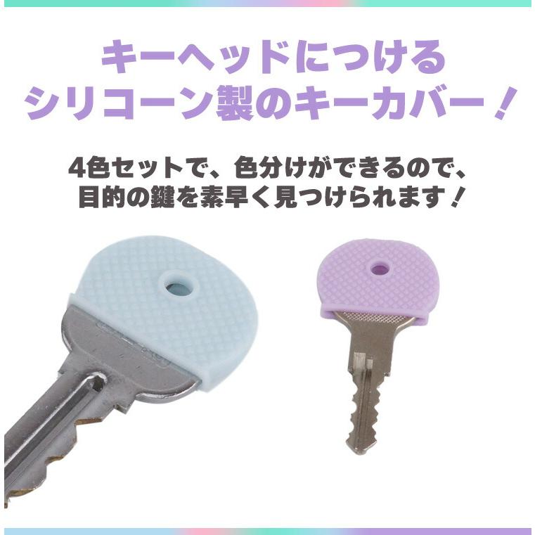 キーカバー シリコン 4色セット キーキャップ 鍵カバー パステルカラー 色 識別 整理 目印 装着 色分け 鍵 キャップ ゴム キーナンバー 隠し 防犯